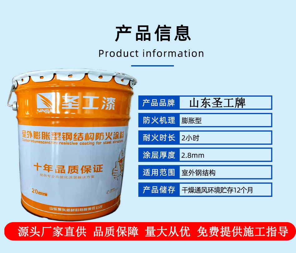 该产品以酸树脂为基料,以N-P膨胀阻燃体系为主料,采用美国技术、全封闭自动化生产,具有耐火极限长、粘接强度高、装饰效果好、施工方便等特殊性能。由国家消防及阻燃产品质量监督检验中心型式检验,产品各项理化性能指标和防火性能指标完全达到或超过GB14907-2018《钢结构防火涂料》标准要求。