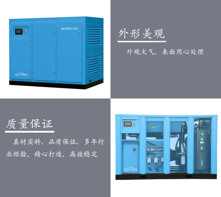 较小的体积:相比于传统的单级压缩空压机,双级压缩永磁变频螺杆式空压机通常具有更紧凑的体积。这对于需要节省空间的工业环境尤为有利,使得安装和维护更加便捷。