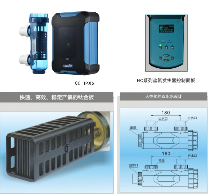 可实现在线监控含盐量和产氯量的问题;HQ系列盐氯发生器可控制循环水泵和,非常的智能,便于对泳池实现自动化控制和管理。