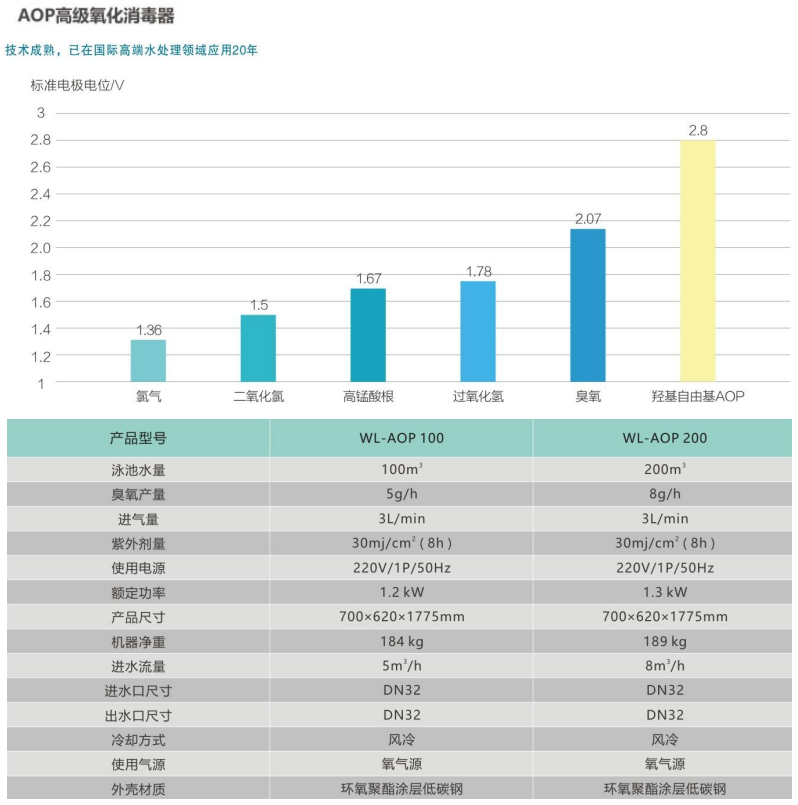 凭借先进的技术和的消毒能力,AOP高级氧化消毒系统成为当前泳池池水消毒净化领域的,更是泳池消毒的理想选择。