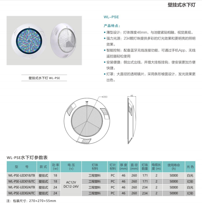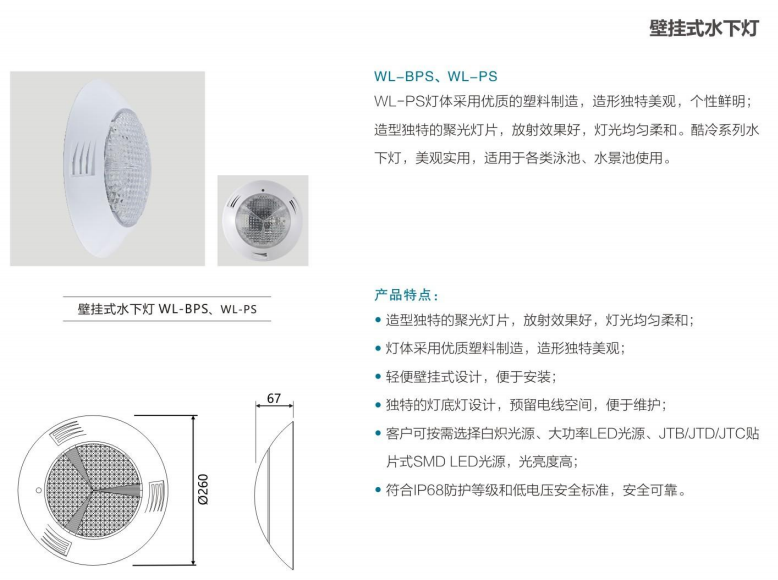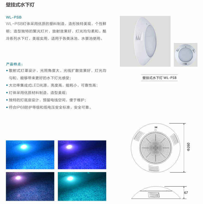 安装壁挂式水下防水灯时,只需要用紧固螺丝将水下防水灯固定在泳池池壁即可,方便非常简单,工程量极小;由于灯体便于拆卸,日常对水下防水灯进行维护也很容易。壁挂式水下防水灯适合于各种新建泳池和旧泳池的水下防水灯光照明系统改造。