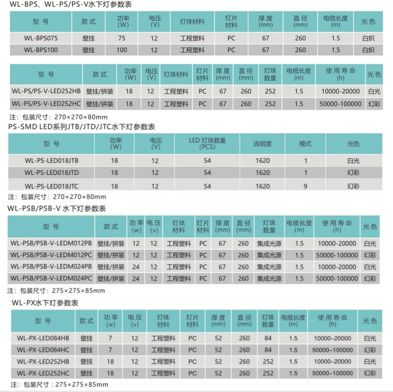 壁挂式水下防水灯