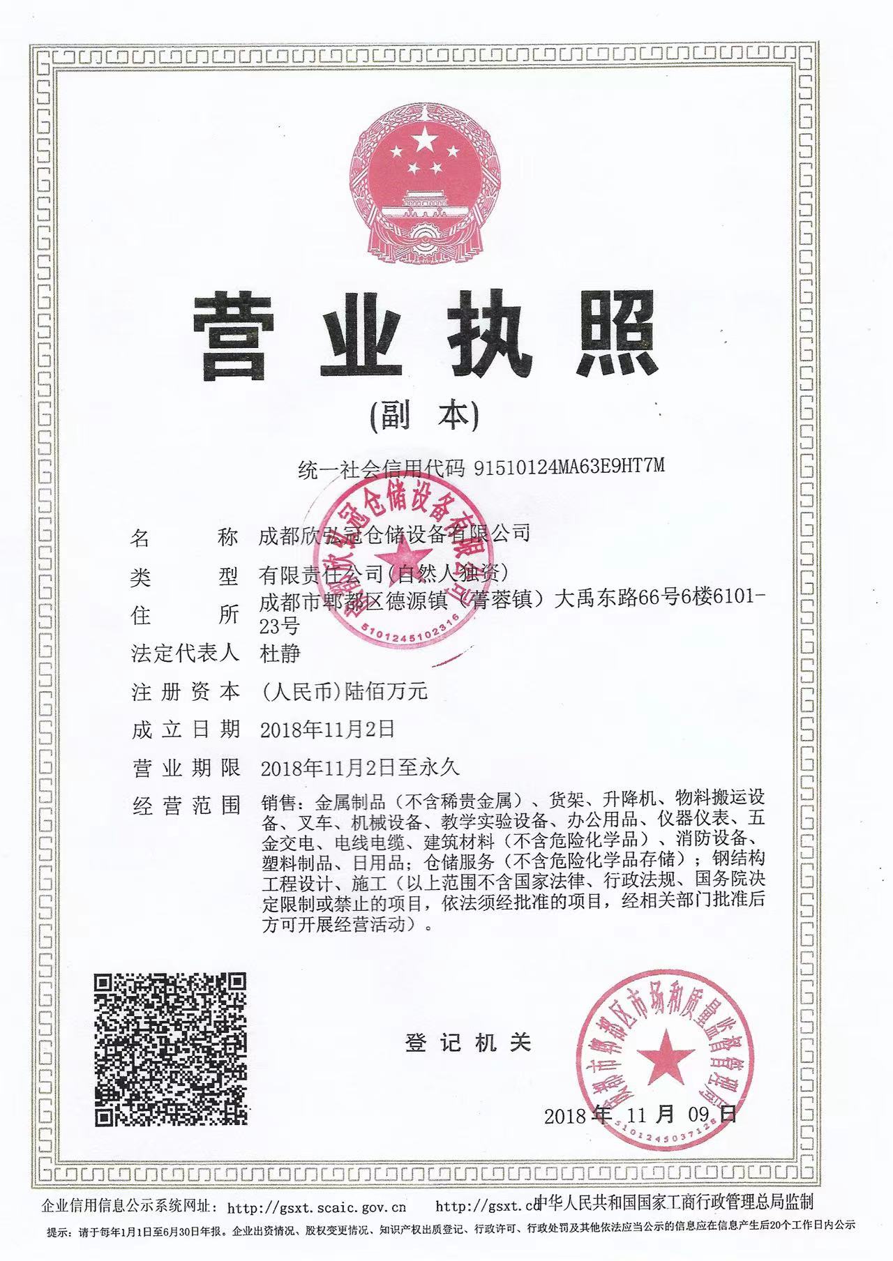 成都欣弘冠仓储设备有限公司