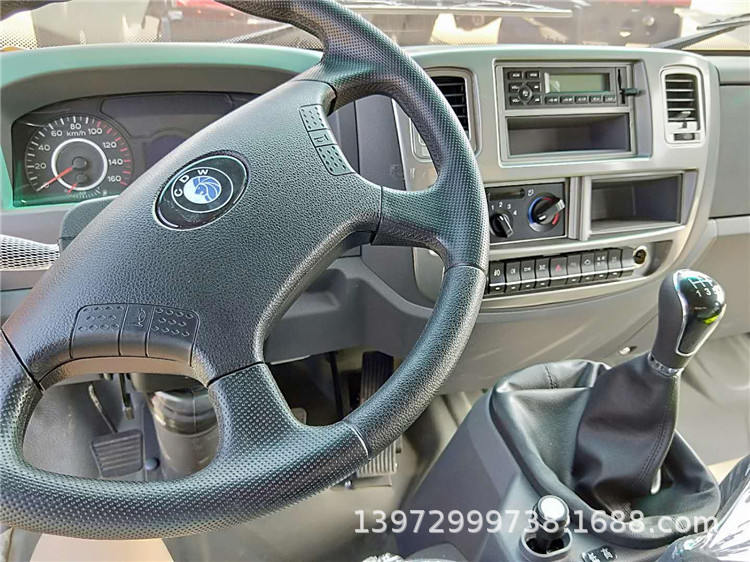 配置1:2080单排驾驶室,轴距3360,锡柴130马力国五发动机,五档带副变速,825轮胎,230大梁,ABS 动力转向,断气刹。货箱尺寸约:3500*2150*550