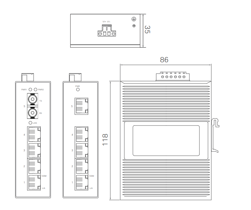 | N:代表光口数量 | 1:代表1个光口 5T:代表5个10/100M自适应电口 |