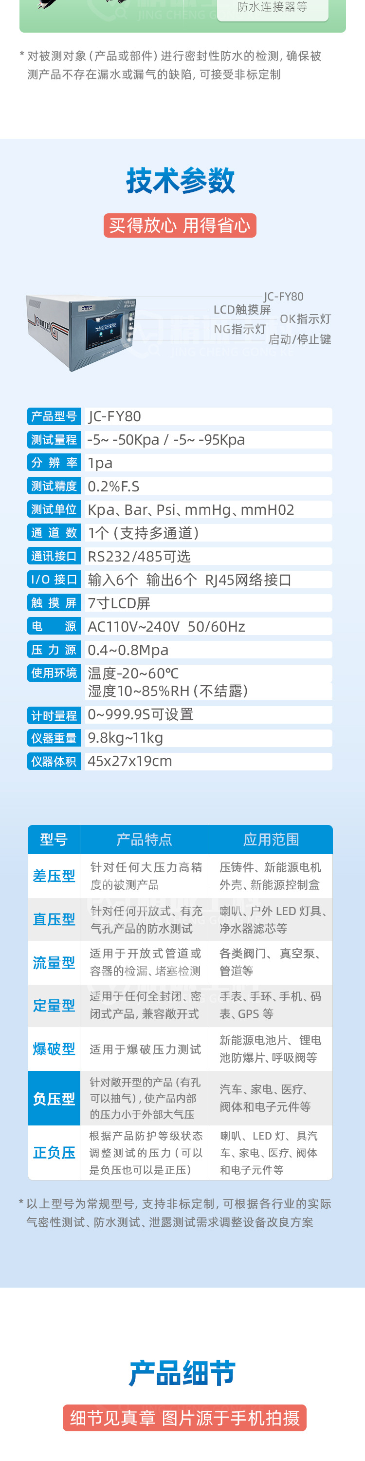 原装进口SMC 精密调压阀和高灵敏传感器,测试数据高