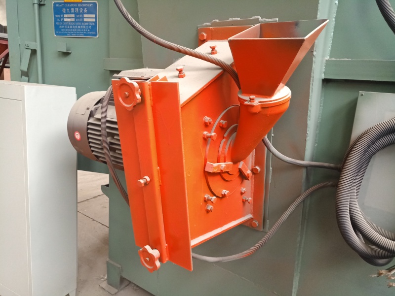 在这三个问题上青工抛丸机厂家给出具体的解答:抛丸清理机它是属于金属表面处理设备,是用来强化金属物件的表面光泽度,具有除锈除氧化皮的功能,移动式抛丸机也叫路面抛丸机,通常使用在地面或者钢板上,经过移动式抛丸机抛丸过后的地面具有防滑防渗透功能,推动式工作效果更明显。2.抛丸清理机可以和喷砂机一起使用吗?,另外,加大定向套的出口中心角可以增加抛丸量,但如果出口中心角增加过大,会使散射角增大,加剧抛丸机衬板的磨损,降低清理工件的效率。 抛丸器作为抛丸机配件的核心部件,抛丸器叶轮又是抛丸器的核心部件,那么足以看出叶轮在整个抛丸机配件的“地位”。抛丸器叶轮在生产过程中各个环节要求是非常严格的,只有这样才能保证抛丸器的长久耐用。除飞出的外,其余的又随丸轮旋转;如果两者间隙很小,若小于一颗直径时,其间隙中就要夹着硬度极高的破碎 (因数量极多,总有机会夹进去)那就像砂轮切割机那样,不是丸轮(碎嵌在丸轮上)切割定向套内壁,就是定向套(碎嵌在定向套上)切割丸轮外圈。而且随着为提高抛丸器抛丸量而加大丸轮直径,由此可知,其圆周速度也加大。磨料从进出口飞逸出来。抛丸室的顶部开口设有锰钢迷宫式挡板,双层橡胶密封和密封毛,防止磨料从顶部飞逸出抛丸室。特殊的光栅感应器,用于识别工件。确保只有当工件进入抛射区时,抛丸器才开始抛丸,,于是求得铸件清理远距离是[(81.-0)m/s×0.71m]/3.m/s=8.0m,不能远于8m(和假设8.3m是一致),同理对机械另件强化是m。给出定量关系。抛丸器做为抛丸机的心脏,在抛丸机的组成部中可为是举足轻重。那么抛丸器到底一部呢?这是很多抛丸机用户迫切想知道的吧。青岛天田抛丸机为你解答。抛丸器厂家-抛丸器厂家厂家-抛丸器厂家价格-抛丸器厂家批发-盐城市双龙机械制造有限公司抛丸器是一种利用高速清理或强化铸件表面的铸造设备。以下是抛丸器的特点、生产工艺和作用:特点:抛丸器具有高的抛射速度,能够直接将抛射到工件表面进行清理或强化。等数有不一致之处,看作是误差,由于钢丸在空气中飞行受到空气阻力Fw=1.7×10- N而衰减,其衰减率是η=3.m/s,根据资料7是一固定数 ,也当作误差处理。抛丸速度随着抛射距离增加而按规律(即按η=3.m/s)衰减,当衰减到不能打下氧化皮(铸件清理)或达不到打出应有的机械零件残余应力和Aemen试片拱度值的抛丸距离就是远距离。根据实验或生产经验。一般铸件清理,抛丸速度在0m/s还有效,但效果不大,机械零件强化要求抛丸速度不低于0m/s,于是求得铸件清理远距离是[(81.-0)m/s×0.71m]/3.m/s=8.0m,,