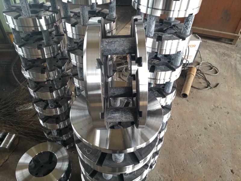于是求得铸件清理远距离是[(81.-0)m/s×0.71m]/3.m/s=8.0m,不能远于8m(和假设8.3m是一致),同理对机械另件强化是m。给出定量关系。抛丸器做为抛丸机的心脏,在抛丸机的组成部中可为是举足轻重。那么抛丸器到底一部呢?这是很多抛丸机用户迫切想知道的吧。青岛天田抛丸机为你解答。避免工件进入幕帘时,抛丸器空转,将磨料从打开空隙中溅射出去。高性能抛丸器抛丸器内衬有耐磨护板的高质量焊接外壳,在抛丸器使用寿命期间终身使用,无需更换或补焊。国内抛丸机抛丸器外壳容易打坏,经常需要补焊。双碟式抛丸器内有个由特殊硬质锰钢制成的叶片,叶轮孔径直接连在电机轴上,中间无需任何连接器。而国内抛丸机抛丸器即使是连拔式设计,,磨料中要是有砂存在,就会加剧叶片的磨损。有些公司曾经用碳化钨甚至碳化硼来制造抛丸器的叶片,使用寿命大大延长。但这些超硬材料的脆性使得这些耐磨性能杰出的叶片不能真地在抛丸领域发挥其作用。畅想起来,抛丸器叶片都为平面状。曲面状抛丸器叶片,性能更优越。抛丸器有大有小,常用的抛丸器直径在00~00mm范围内,功率在11~kw之间,较大功率可以达到110kw甚至更高。多数抛丸器与配套电机成套供应,也有抛丸器与电机采用皮带传动。现今较大的抛丸器达到1000多kg/min的抛丸量。由于:a限位开关故障;限位开关没有闭合(机盖打开),导致断电。由于维护方面的失误——使用了不合适的润滑剂或润滑剂不足导致叶轮和主轴承被卡住。当电机超负荷时电机安全开关将电流切断。.抛丸器不能启动,原因:抛丸器被丸料堵满(供料闸没有合上)。抛丸器检测标准要求:抛丸器叶轮体径向跳动≤0.1mm,端面跳动≤0.0mm,动平衡检测≤18 N.mm,抛丸器主轴承座空运转1小时温升≤3℃。1.抛丸器安装时,先用压缩空气将叶轮内,螺孔内残留丸料和灰尘吹扫净;2.换叶片时,对称更换或全部8片一齐更换,以保证叶轮平衡;,