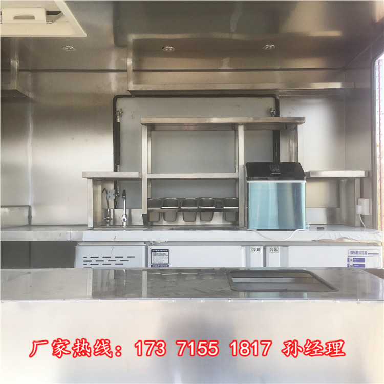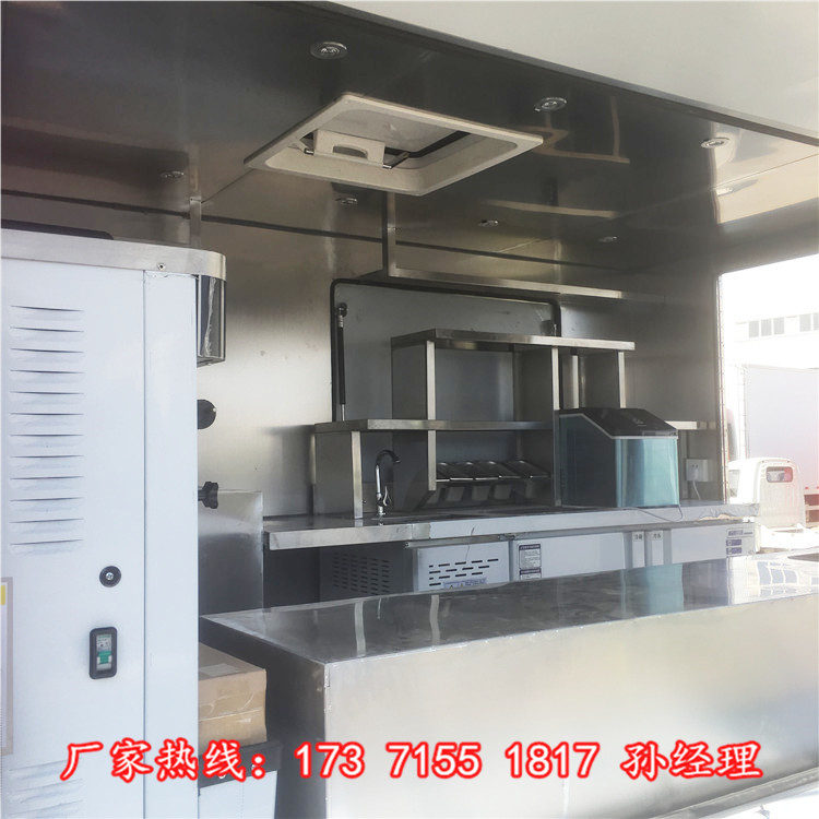 设备:可根据用户要求选装车厢内设备,如不锈钢操作台、不锈钢层架、玻璃橱窗、不锈钢平冷柜、烤箱、冰淇淋机、果汁机、扒炉、炸锅、洗手池、发电机(发电机舱)、空调等。
