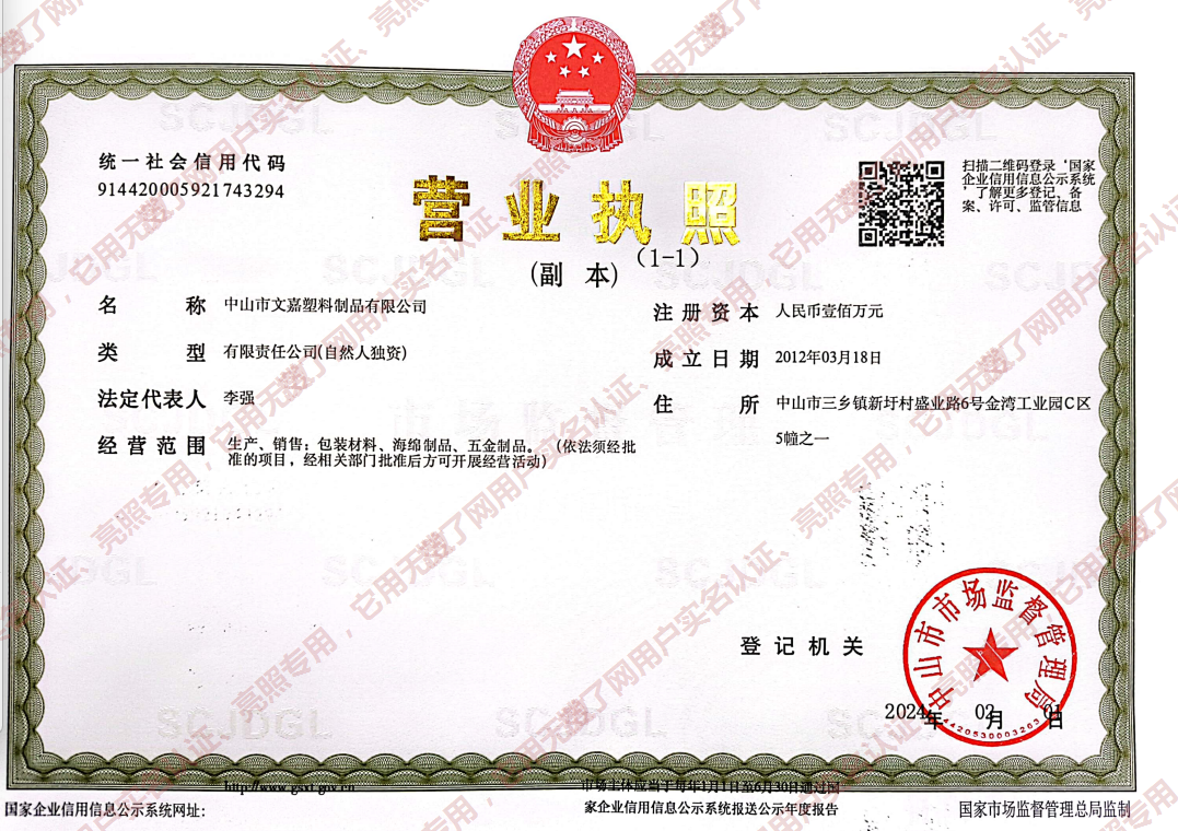 中山市文嘉塑料制品有限公司