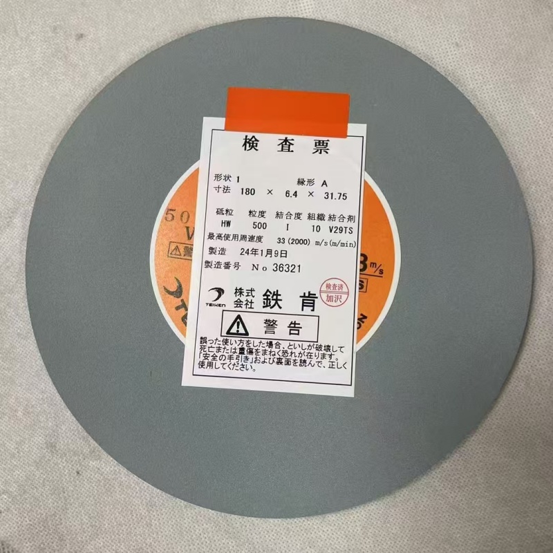 日本铁肯砂轮由「磨粒+气孔+结合剂」所组成,而细部的调整则是关乎砂轮在研磨时的特性与效果。为了辨明细部规格的差异,而由五个项目作为标示:磨粒、粒度、结合度、组织、结合剂。