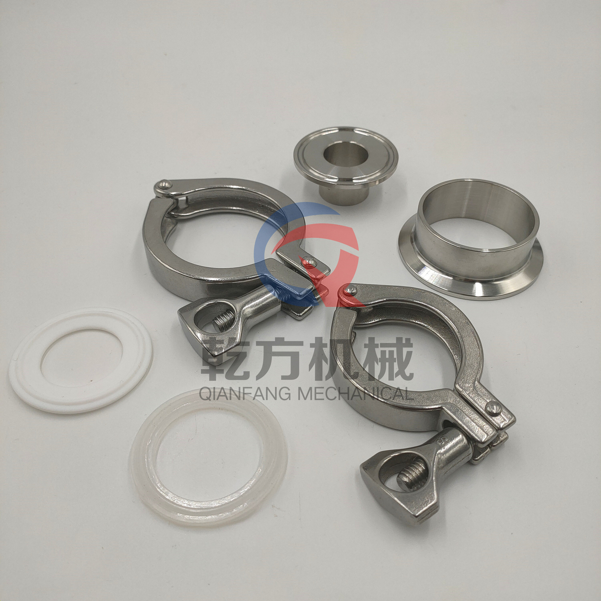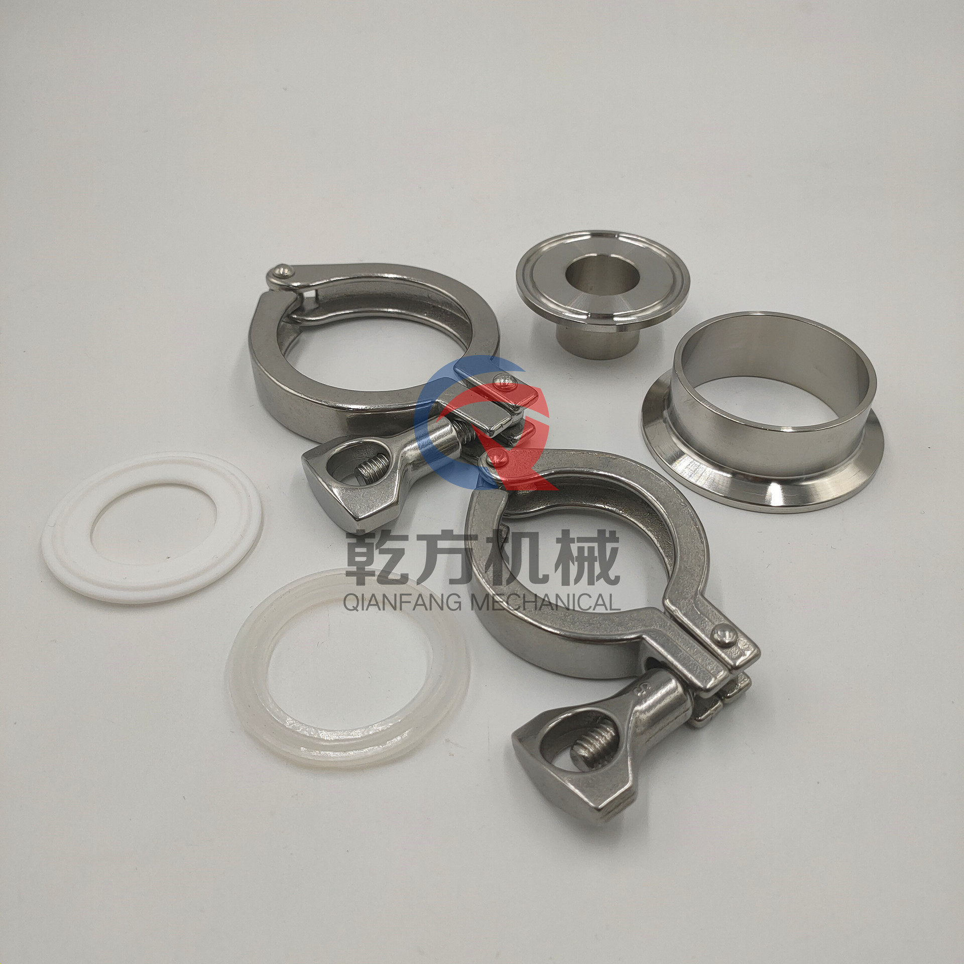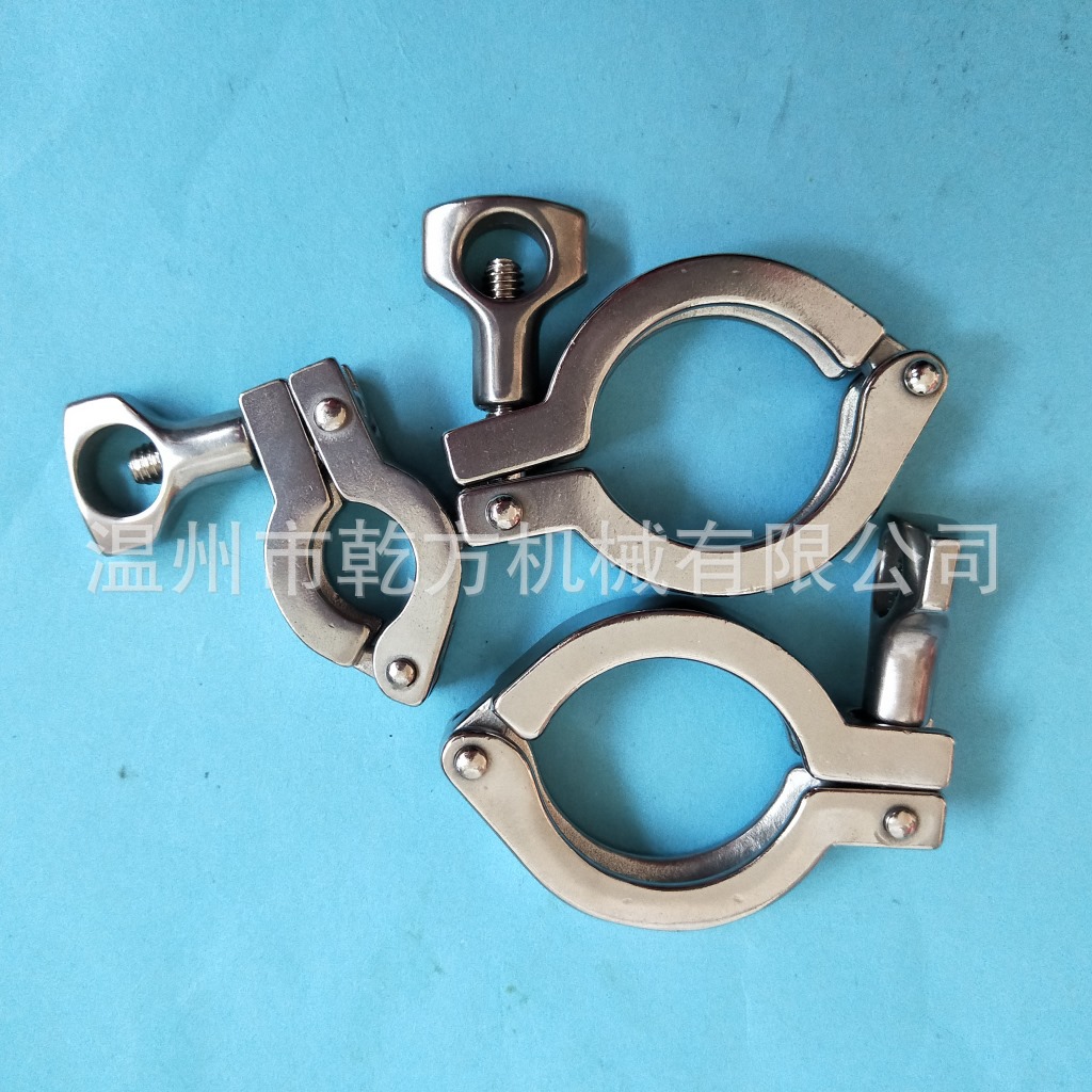 不锈钢卫生级卡箍接头套装,也叫快装接头、端头、卡盘、管接头;卡箍、接头都是管道配件的一种(一整套包括:两个快装接头、一个精铸卡箍和一个硅胶垫片)。其主要性能是快速连接,安装方便,为工程带来便利。我们常见的卡箍有不锈钢精铸卡箍、冲压卡箍、高压卡箍等。常见的接头有快装接头、活接头(也被称为由任),螺纹接头(螺纹接头分为外螺纹和内螺纹)。卡盘也被称为卡箍接头,其为卡箍配套设备配件,同硅胶密封垫是同一套配件。