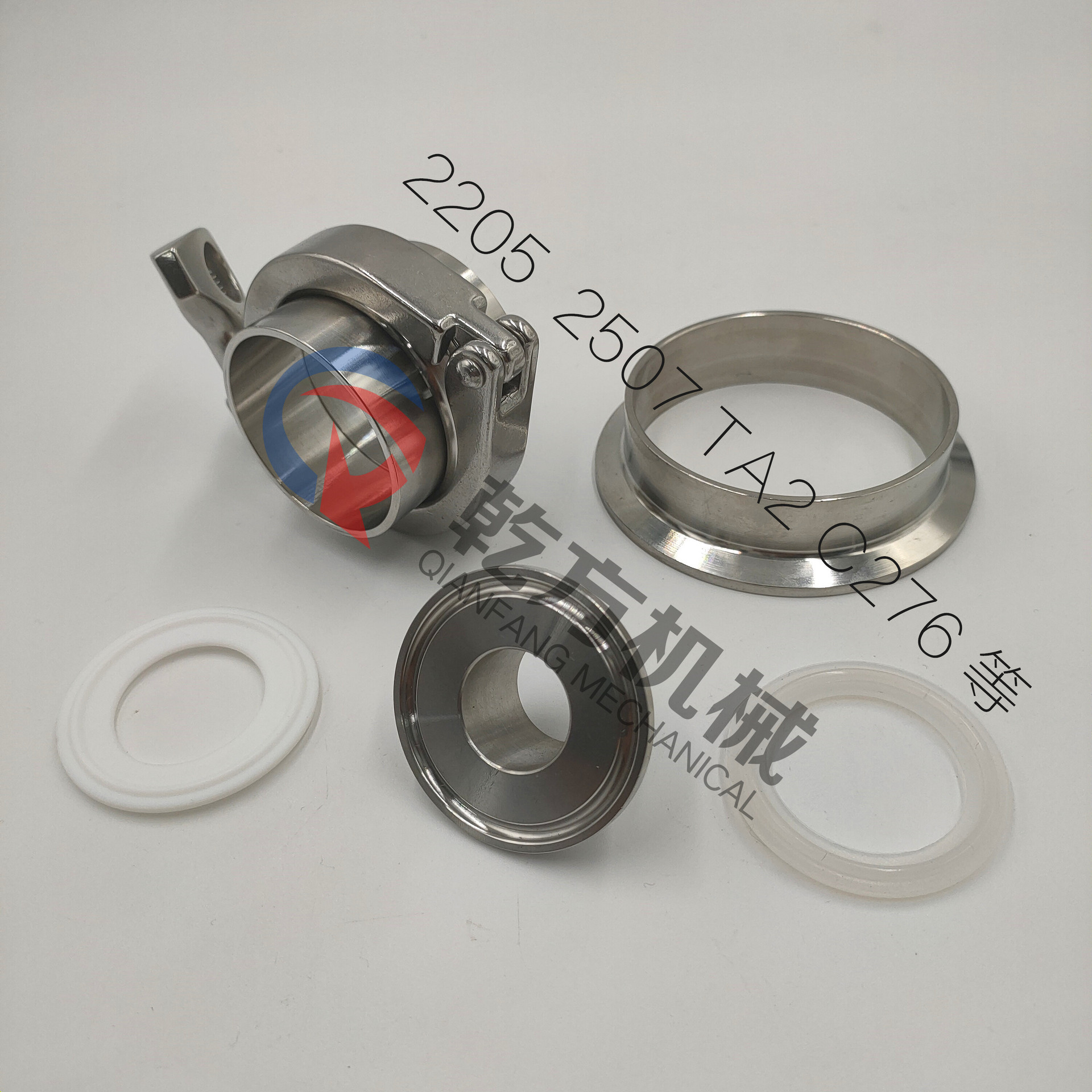 4、产品材料:快装接头材质为不锈钢304、316L、2205、2507、2520、904L、C276 等,卡箍材质为201、304、316L