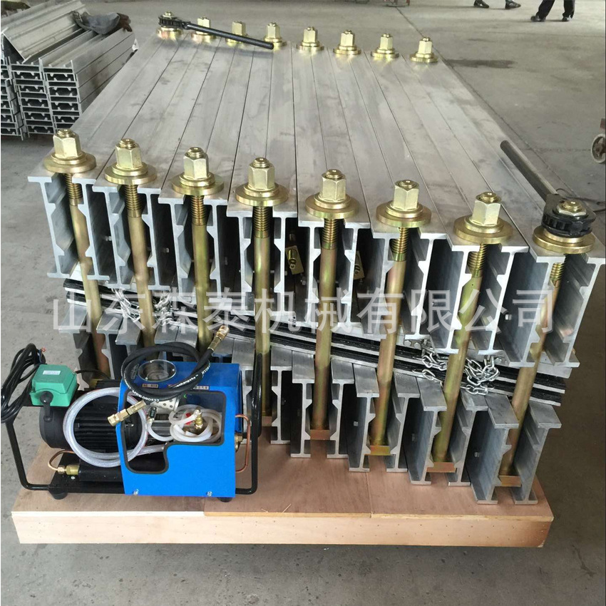 组成部分:上下横梁,水压板,隔热板,上下加热板,紧固螺栓,加压泵和电控箱组成。