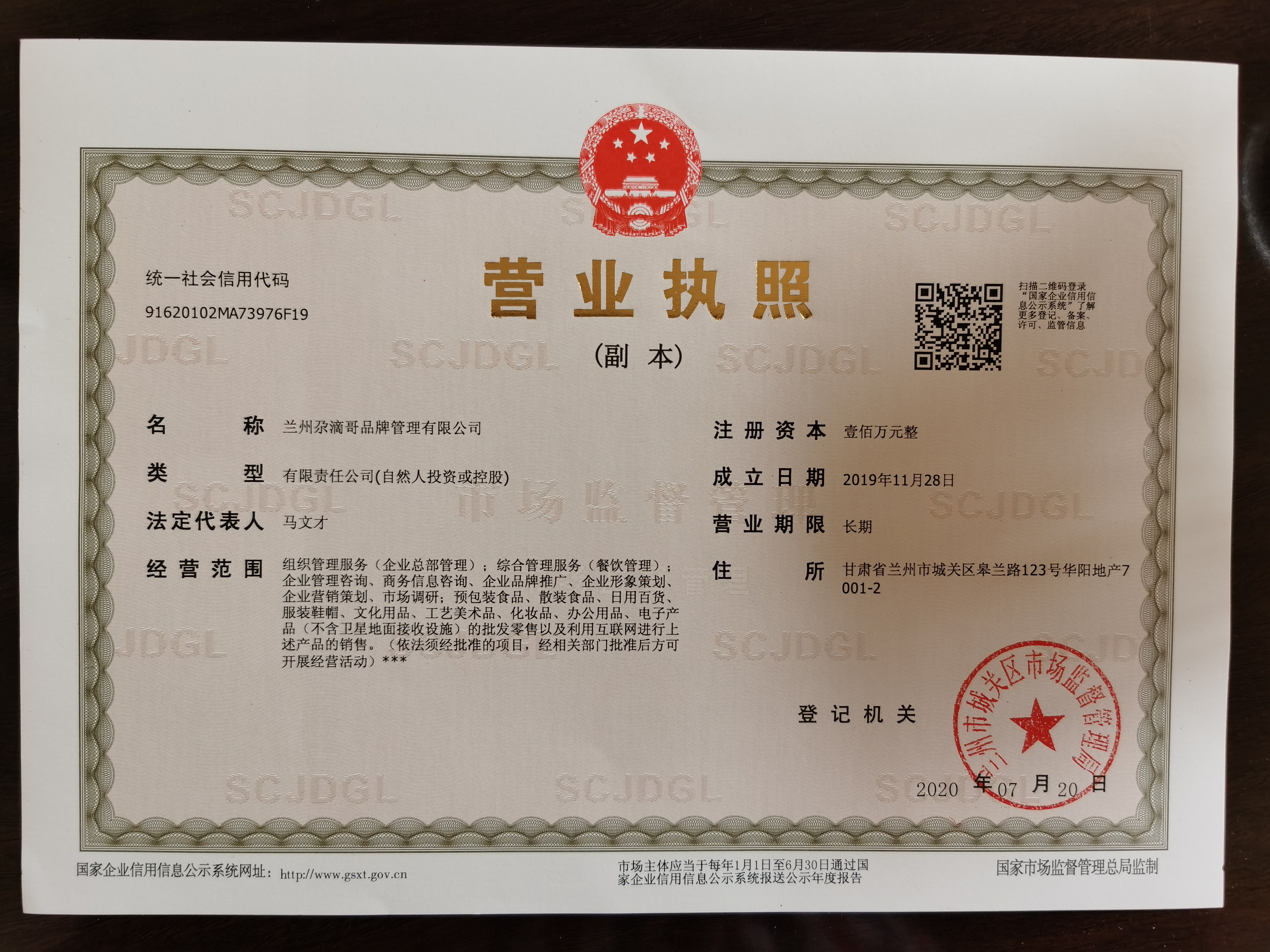 兰州尕滴哥品牌管理有限公司