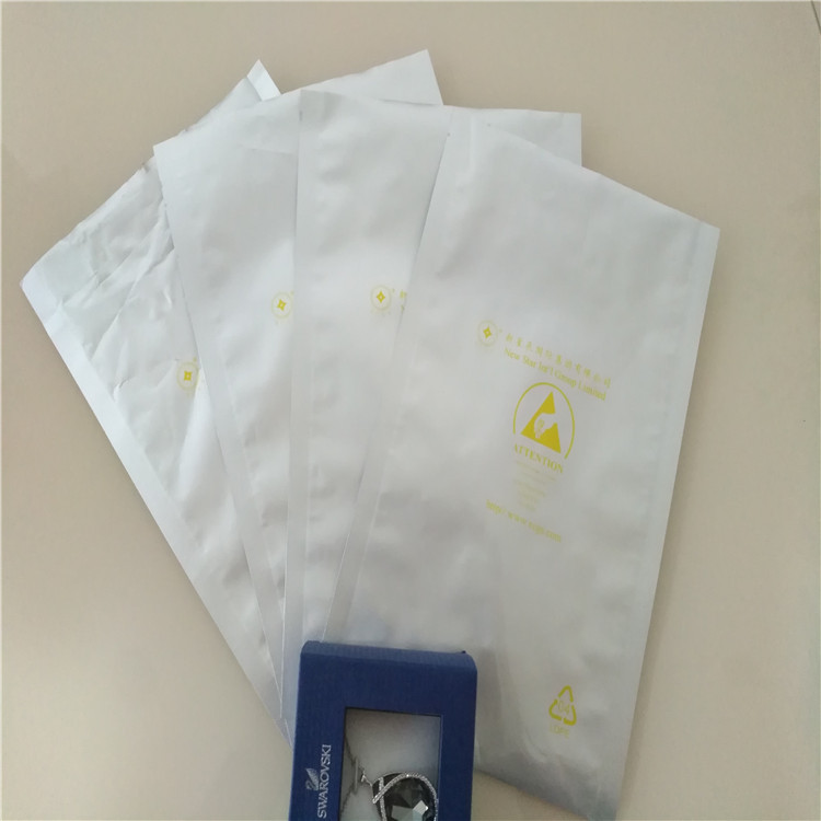 材质结构:防静电层(PET)/铝箔层(屏蔽防潮层)/PET/防静电层(PP或PE)