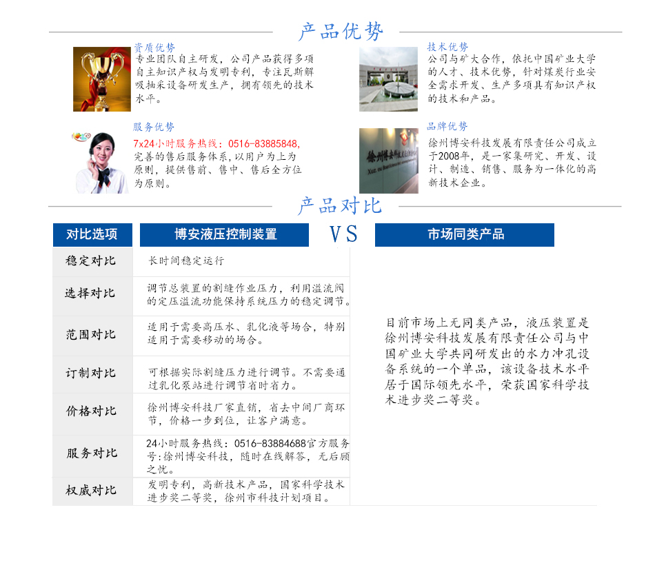 【产品优点】 实现打钻和煤层割缝工作状态的切换、保持打钻过程中常压水流量稳定、调节割缝作业压力。