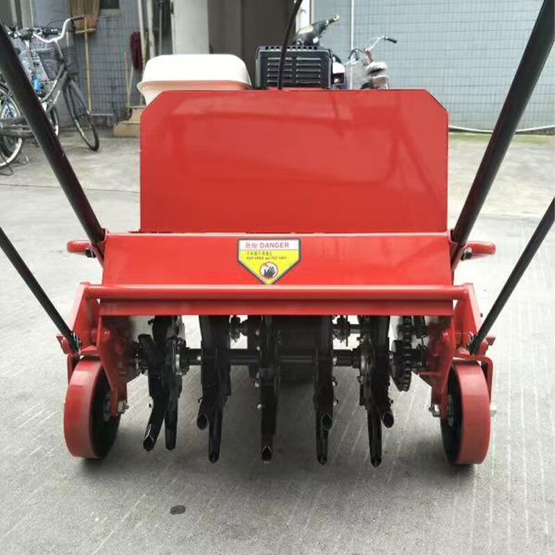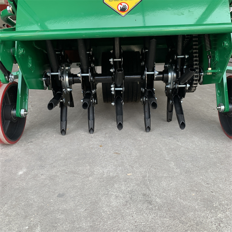 这种打孔机主要用于小面积草坪以及一般动力打孔机不易作业的地方,如树根附近、花坛周围、草坪边缘及运动场球门杆周围。