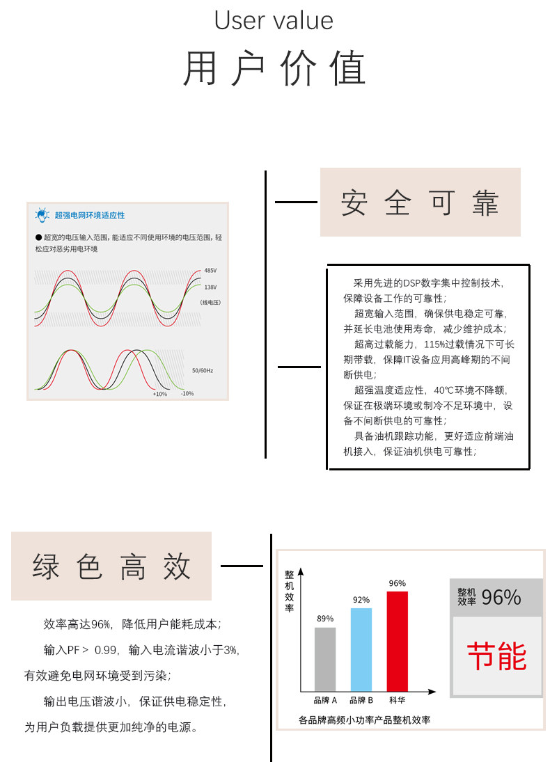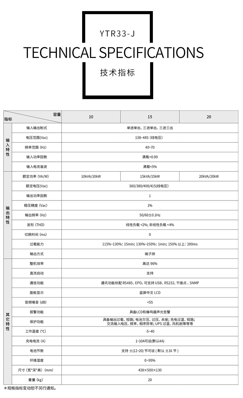 科华ups厂家YTR3320-J在线高频20kva/20kw外接电池384v长延时