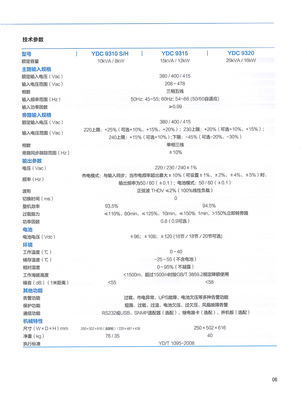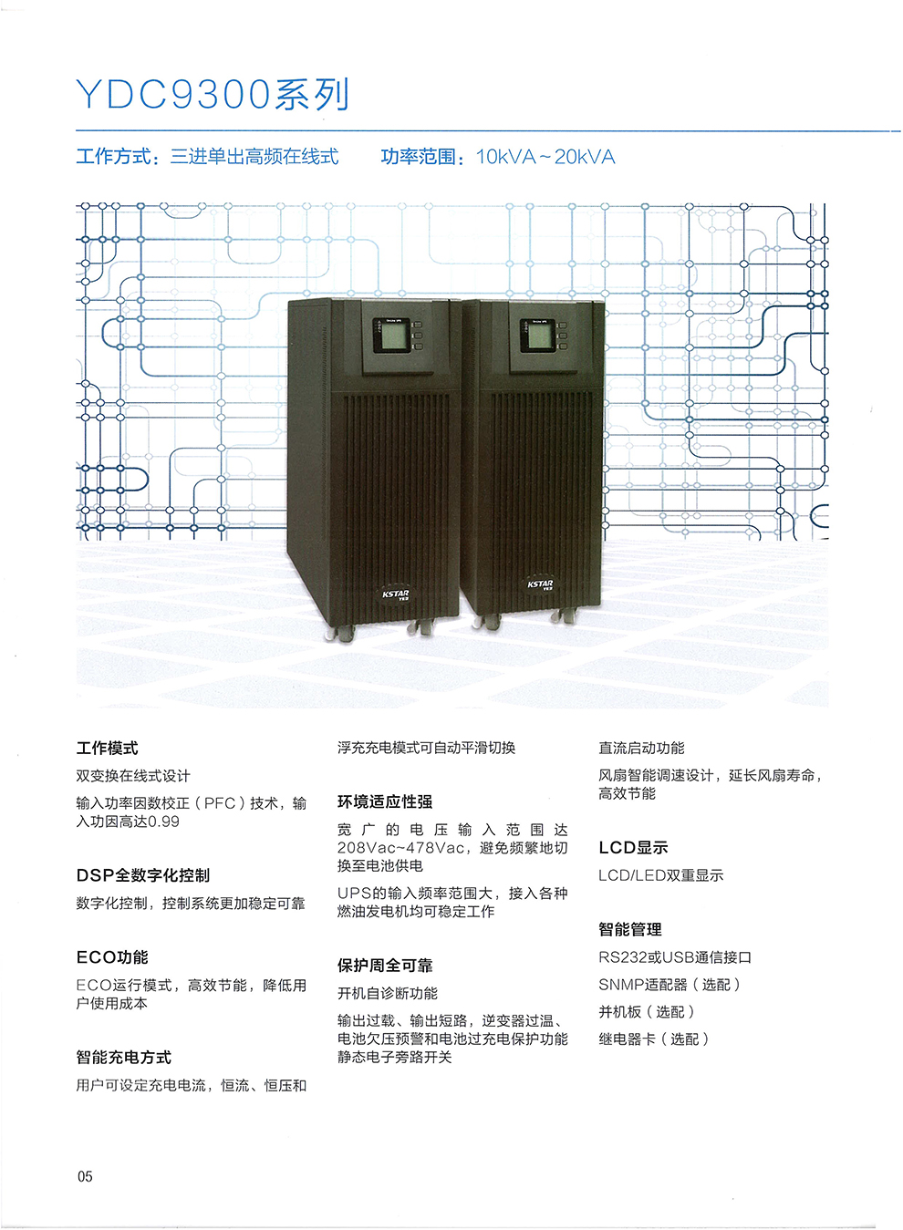 工作方式:三进单出高频在线式;功率范围:10kVA~20kVA