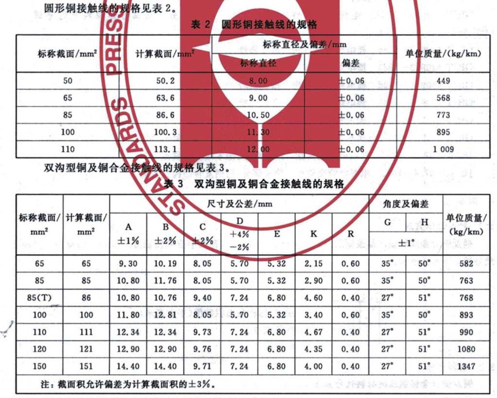 双沟铜接触线,铜电车线:CT65,CT85,CT100,CT110,CT120,CT150,CT185,CT200,对应的老型号为TCG-65,TCG-85,TCG-100,TCG-110,TCG-120,TCG-150等