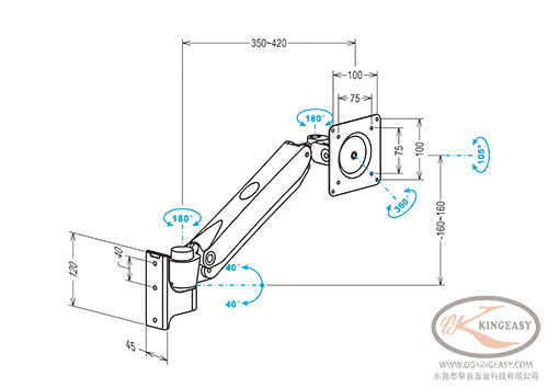 ●升降臂万向自由旋转359度,左右摆动180度调整,各个角度自由观看;