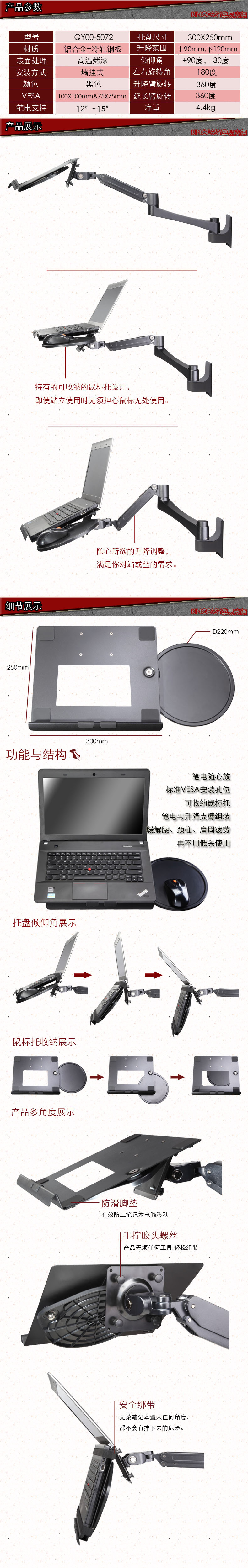 KINGEASY擎易多角度调整,上下无级升降调整笔记本电脑墙挂支架