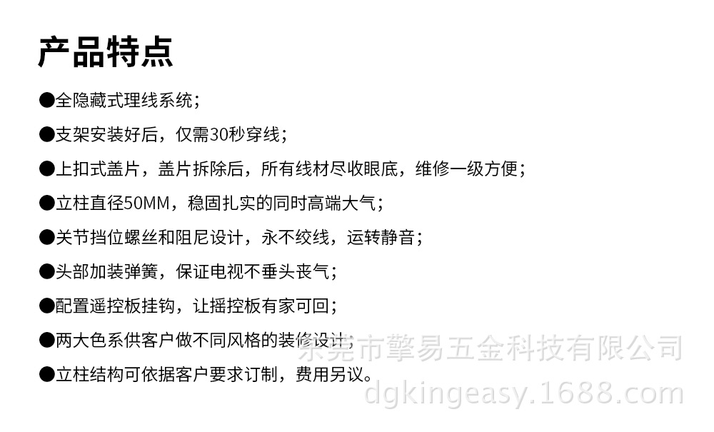 KINGEASY擎易敦豪系列桑拿水疗会电视无级升降支架