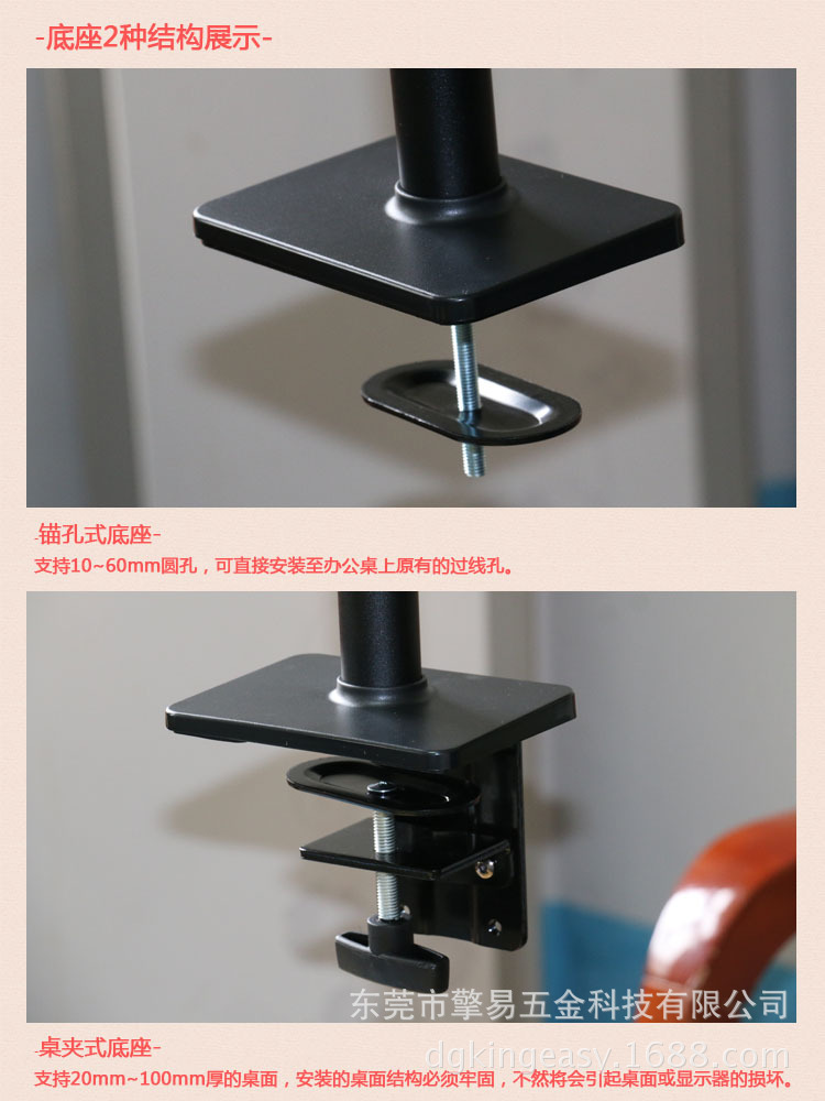 KINGEASY擎易桌面上下双屏显示器支架/双屏电脑支架/适用中控台