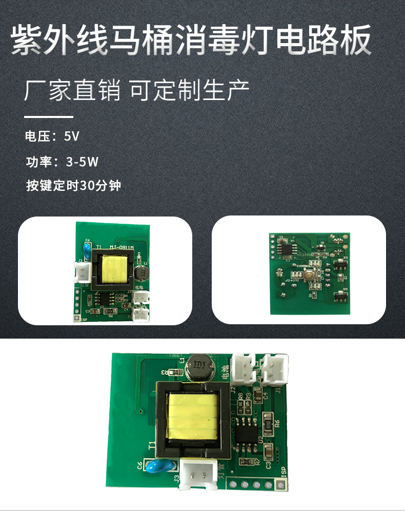 智能马桶紫外线杀菌灯线路板,电压5v,单键触摸开关,定时杀菌消毒等功能,可满足你各种需求的设计开发。