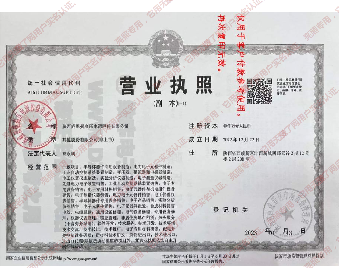 陕西威思曼高压电源股份有限公司
