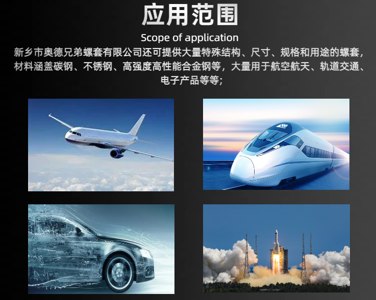 插销螺套最早应用于美国的航天航空领域,对高扭矩要求的使用环境下,表现出非常高的抗拉、抗扭性能。目前已广泛应用于航天、航空、仪器、轨道、交通、通讯、电力、化纤、纺织等领域。但进口插销螺套采购困难,周期长,价格高,严重制约国内市场的使用,新乡市奥德兄弟螺套有限公司依托优势,积极探索,终于成功生产出全系列,全规格插销螺套产品,常规才会为不锈钢303CU,碳钢12L15,规格涵盖M2-M24,0-80~1-8等公制和美制尺寸。