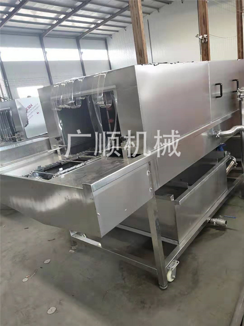 该机整体采用SUS304不锈钢材料制作,采用不锈钢热水清洗泵,能够替代传统的人工清洗作业,清洗后直接进入风干段进行风干,满足不同食品企业的大量周转箱清洗要求。本机性能可靠、运行平稳、安装维修简单,具有生产效率高、清洗效果好、能耗低、使用寿命长等特点。此外,还可根据客户的不同要求制作各种不同规格的周转箱(盘)的清洗机