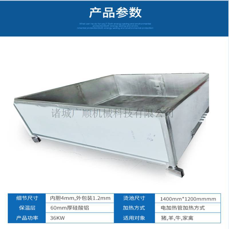 是一种采用封闭箱体式结构,蒸汽散失量少。采用热交换方式加热,避免烫伤畜体。气动紊流搅拌,水温均匀,浸烫充分。