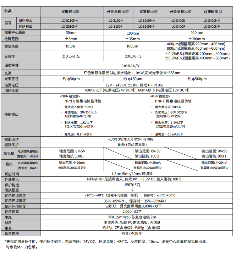 原厂激光位移传感器LC-S400MN系列替代HG-C1400系列 模拟量开关量双输出