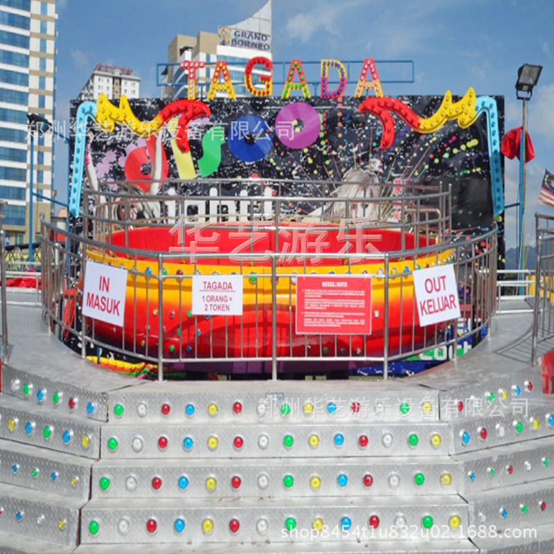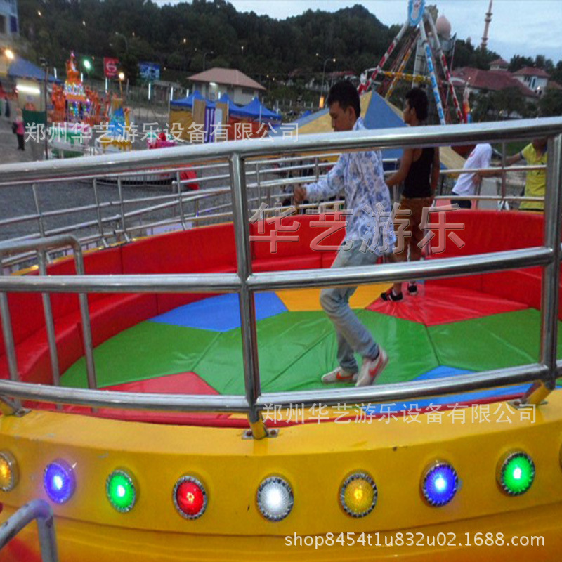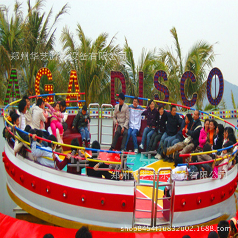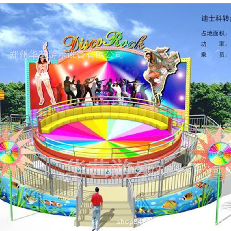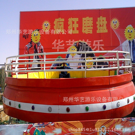 “迪斯科转盘”又名大家颤,太空迪斯科,它是一种常见的游乐设施,很多大型游乐园、公园里就有。这转盘一进入人们的眼帘,确实是一幕妙趣横生的娱乐世界。说它悠,它翩翩起舞,飘忽不定,惹得人们休闲心顿起;说它酷,它飞旋瞬变凶猛异常,使人娱乐情陡增,盘底一双灵巧的铁腿,忽而一伸冲天,忽而腑伏着地,联接着飞蝶似的天外来客,叫一旁观摩的游客,急着跃跃欲试为一快,而正在乘坐的乐在其中,洋洋得意。潇洒坐一回,有一幕玛丽娅台风中心慢旋转,请您不妨细细品味它的情境。它是一个大圆盘,能翻滚,转动做十多种运动。游客就在大圆盘上的沙发上围坐成一周,伴随富有节凑的音乐,身体随着圆盘运动。当人坐在上面时,并不是固定的!圆盘运行时如大海波涛颠簸起伏,又如太空飞碟,变化无穷,时快时慢。迪斯科转盘转盘是陀螺类高速回转大型游乐设备。游客乘坐的吊箱在强离心力作用下,高速旋转翻飞,仿佛被推入超越时空的天体,翻江倒海,天旋地转,惊心动魄的刺激,风驰快感,令人回味无穷。乘客紧紧吸俯在座舱,身体不再属于自己,把一切交给可以信任的宇宙游乐设备,你只要紧紧抓住以此成功的机会,就可以实现内心的自我。让耳旁呼呼的风声伴随你每一次完成的喜悦,胜利往往属于勇敢者。迪斯科转盘可以45°度旋转,玩法是你坐在座位上,到了高处,一震一上一下,就会从座位上摔下来。迪斯科转盘的价钱是10—15元(不过,有些大型娱乐场所如欢乐谷20—35元都有)在大部分城市的乐园都有。