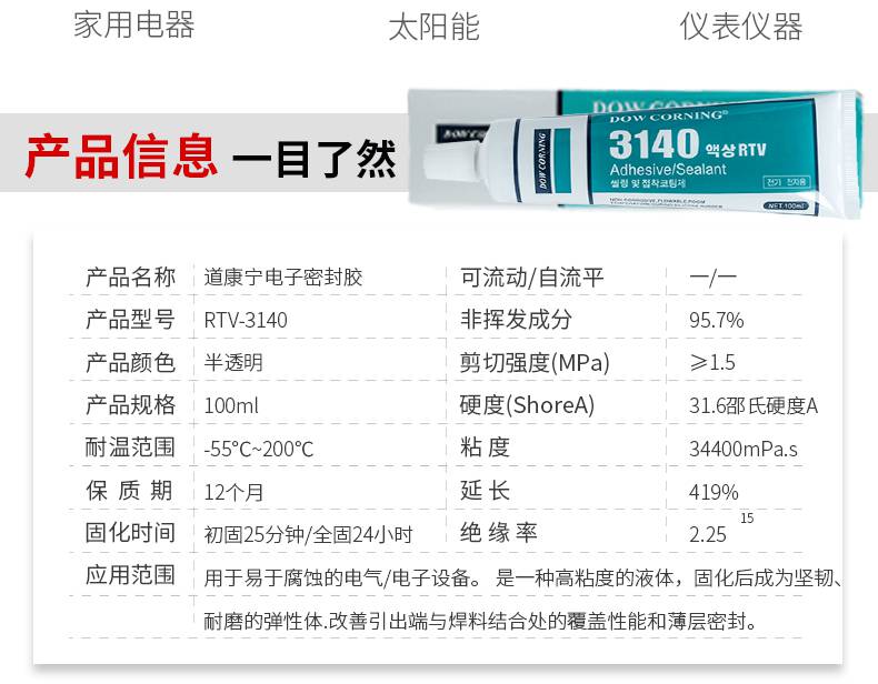 道康宁3140密封胶适用场合