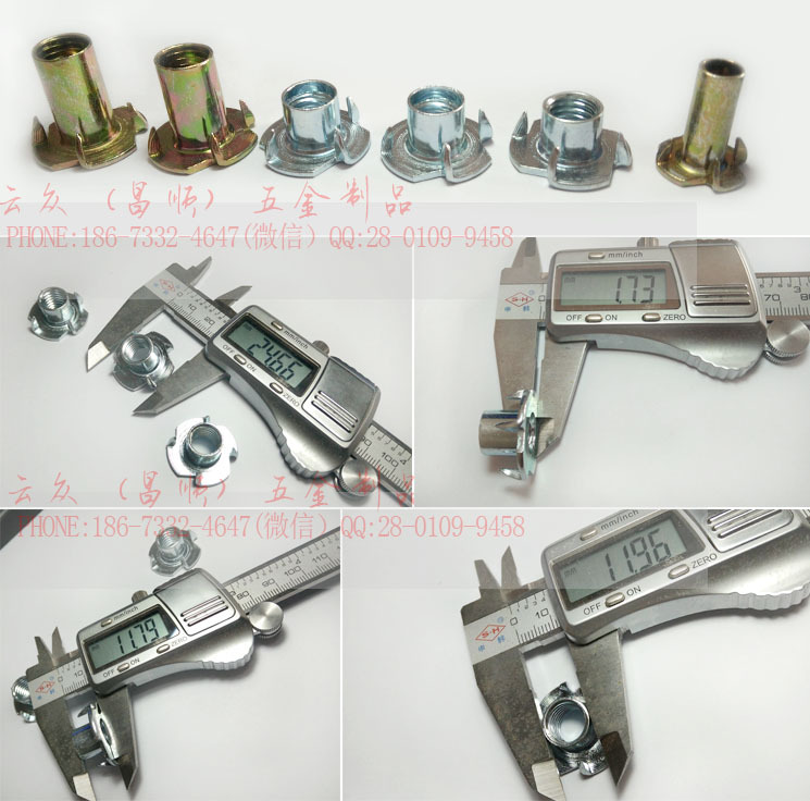 四爪螺母是比一般木板镶嵌螺母更牢固的一种家具螺母之一,四爪对称分布,爪钉有效扣住木板.螺牙M4-M10公英制。四爪螺母广泛应用于家私安装上.特别是沙发上.在安装时由于各种原因会使螺母打转,产生安装困难.四爪螺母通过爪钉固定在木板上,有效解决旧款螺母的缺陷.