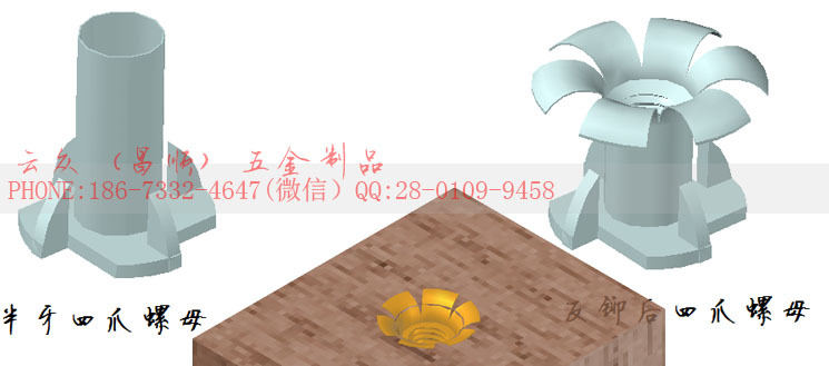 全牙四爪螺母 四爪钉安装示意图: