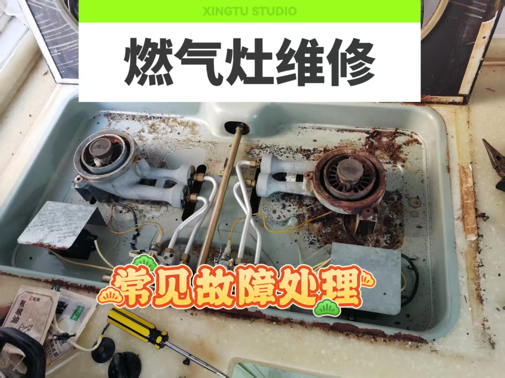 ## **四、燃气灶漏气(危险!需谨慎处理)**
