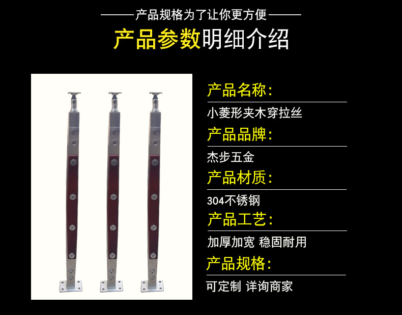 不锈钢穿管立柱。柱身有穿管卡子,常见是4个穿孔,一般穿12mm、14mm、16mm、19mm的小管。