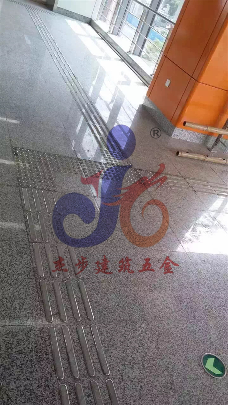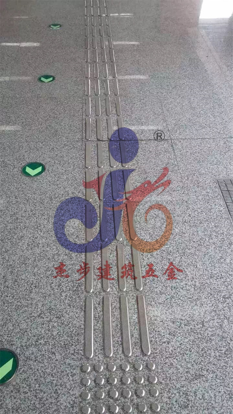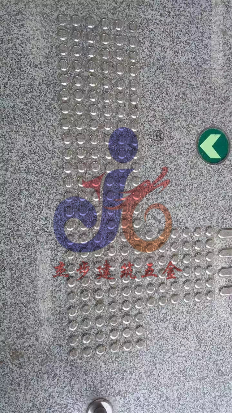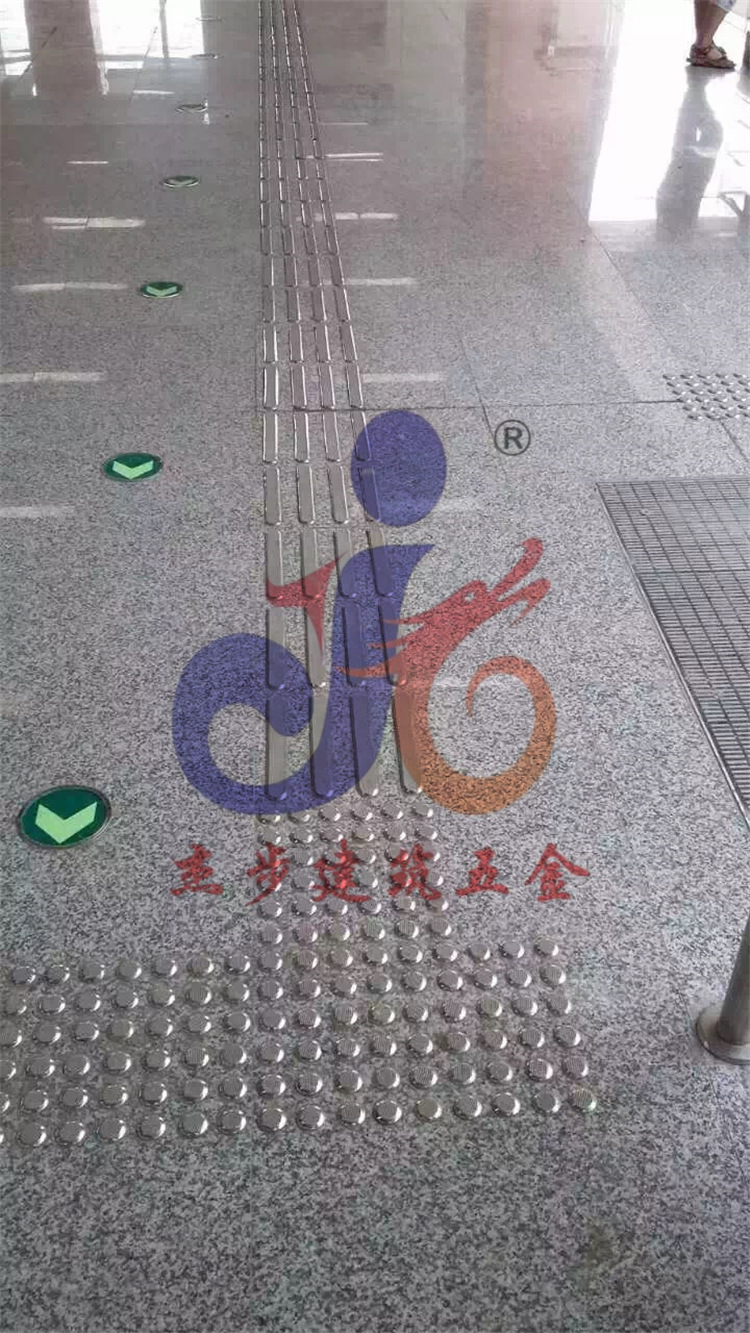 2)提示盲道:呈圆点形,每个圆点高出地面5mm,可使盲杖和脚底产生感觉,以告知视力残疾者前方 路线的空间环境将出现变化 。