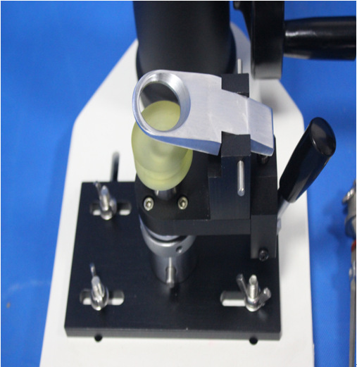 1.装上夹具,配合测试的纽扣,将测试的样板锁紧于底座