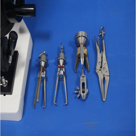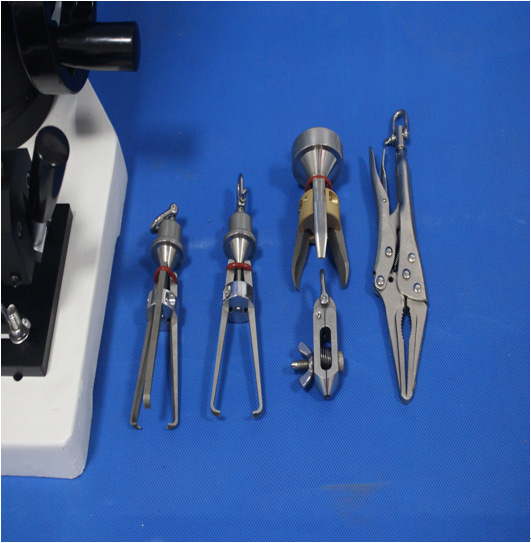 对心底钳--夹面可完全夹紧衣物上的测试件,与各种拉力钳同时使用,可测试领结、补缀、D型圆环、垂片、拉链头、吊钩等衣物附配件。
