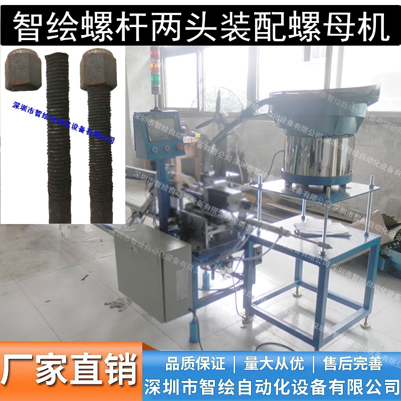 设备简介:超长型螺杆螺母装配机用于螺杆栓两头自动配合螺母螺丝并扭紧的一种自动化矿山机械设备。