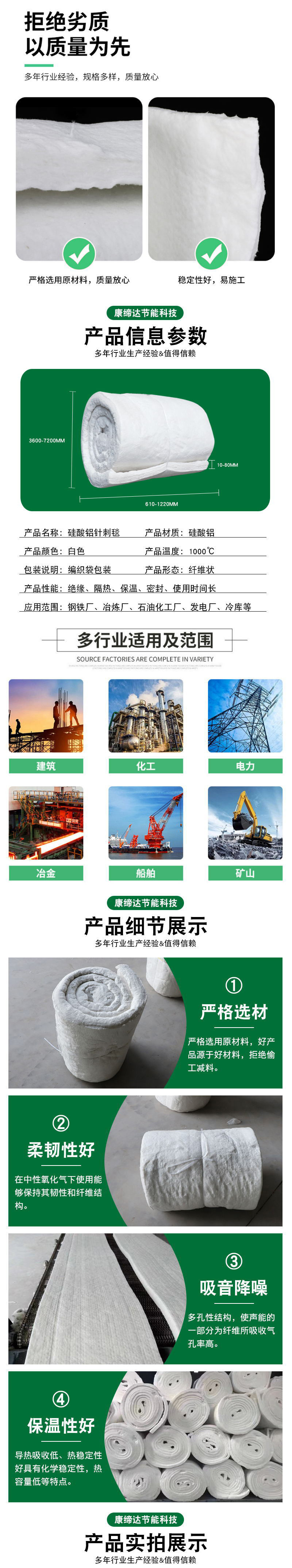 硅酸铝针刺毯 硅酸铝毯厂家定制 防火阻燃保温隔热