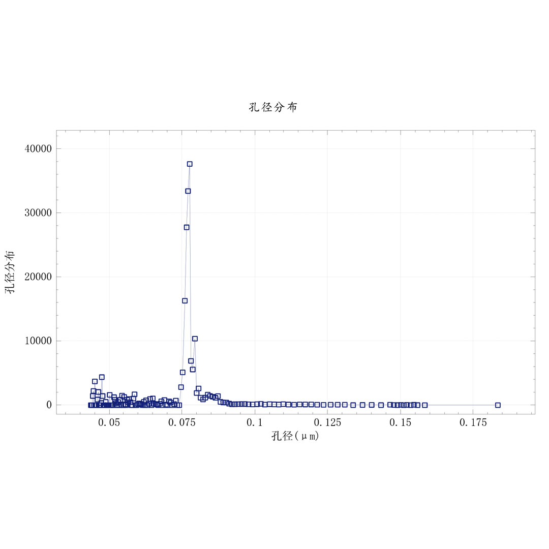 首先被打开的孔所对应的压力,为泡点压力,该压力所对应的孔径为* 大孔径; 在此过程中,实时记录压力和流量,得到压力-流量曲线;压力反应孔径大小的信息,流量反应某种孔径的孔的多少的信息;然后再测试出干膜的压力-流量曲线,可根据相应的公式计算得到该膜样品的* 大孔径、平均孔径、*小孔径以及孔径分布、透气率。