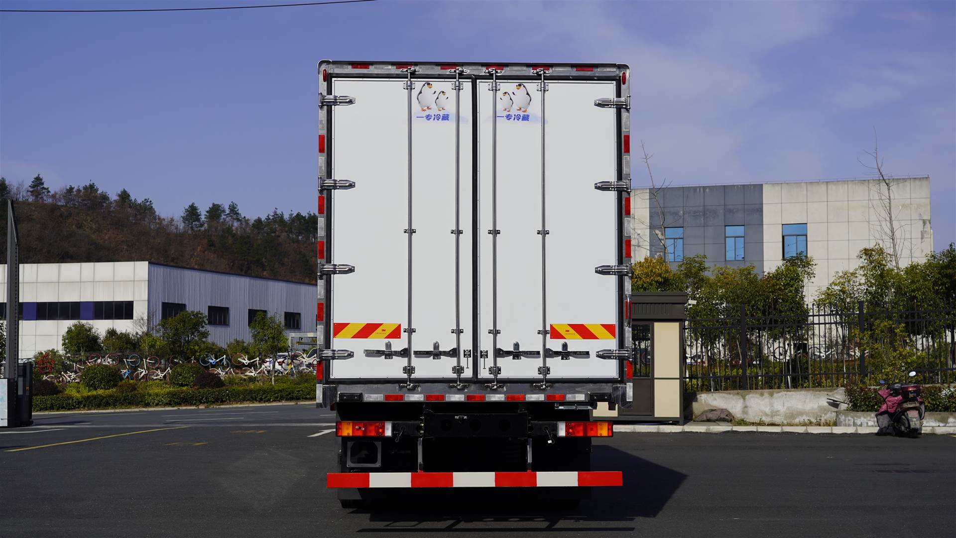厢体配置:采用聚氨酯整体高压发泡成型生产工艺制造,厢体外采用预涂铝合金铆接,厢体厚度8CM,保温材料为40-50kg/立方高密度聚氨酯发泡,内蒙皮采用食品级(FDA认证)自带通风槽VR板材,无空隙高压整体灌注发泡压板技术(行业技术水平),厢体副梁与横梁为冷铆工艺连接,箱内底板矩形满焊通风槽,箱内300MM高裙边护板,铝合金型材包边,304不锈钢门框,加厚型不锈钢后门合页及锁件,厢体内部采用LED照明灯及厢体示宽灯。