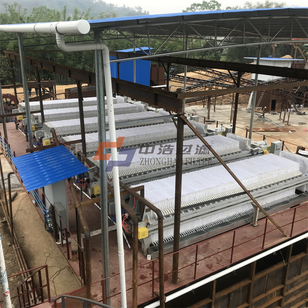 厢式压滤机是目前工业应用最广泛的机型,其滤板为整体结构,凹腔形成过滤室,进料压力高,可实现自动拉板、自动卸料。