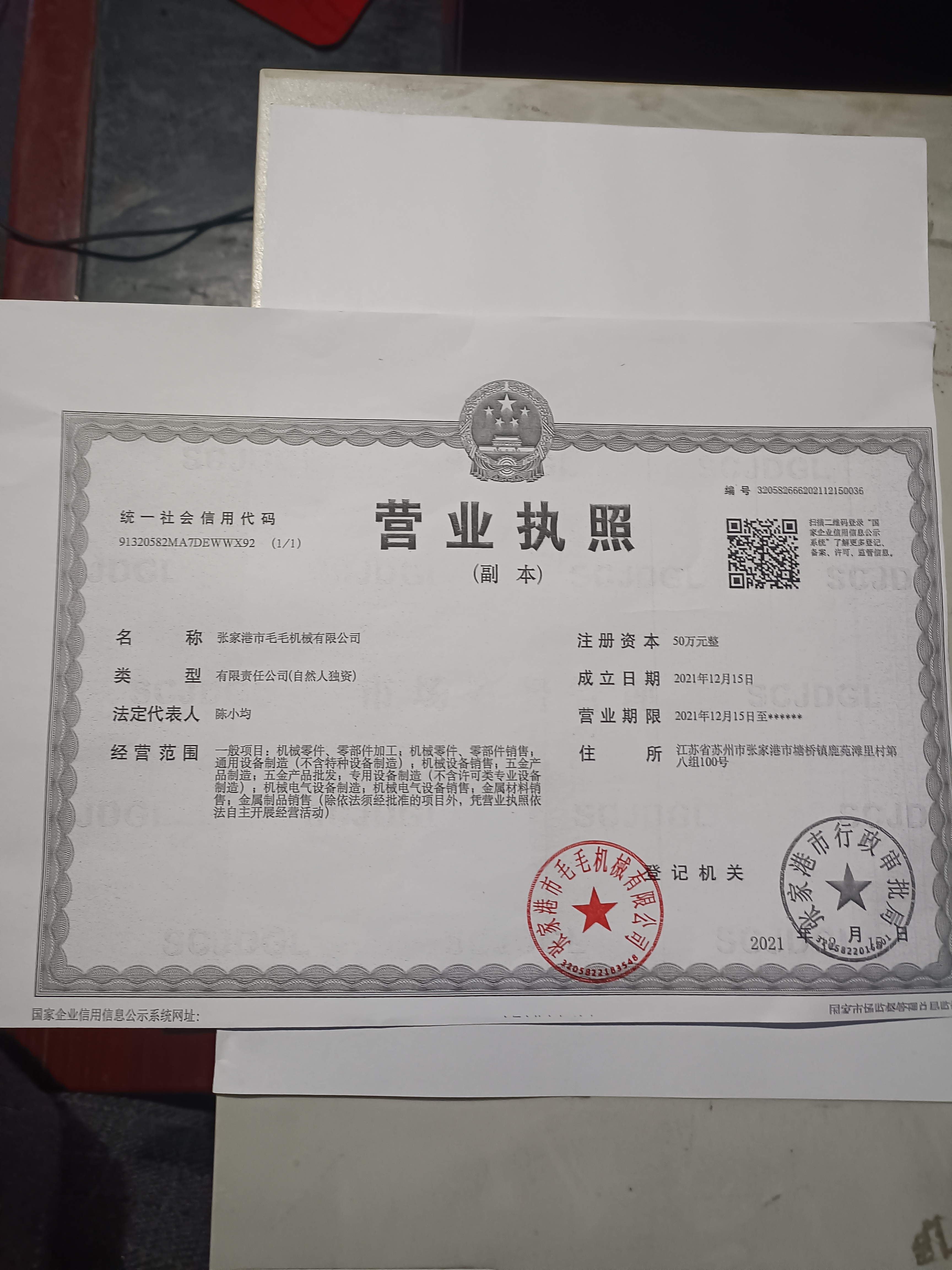 地址: 中国 江苏 苏州市江苏省苏州市张家港市塘桥镇鹿范滩里村第八组100号